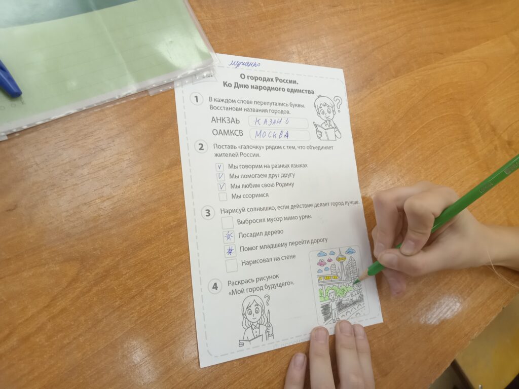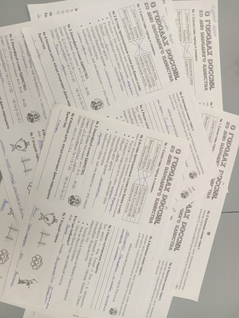 Ребята говорили о единстве народов, о важности дружбы и взаимопомощи в нашей жизни. Ребята поработали в рабочих листах «4 ноября».